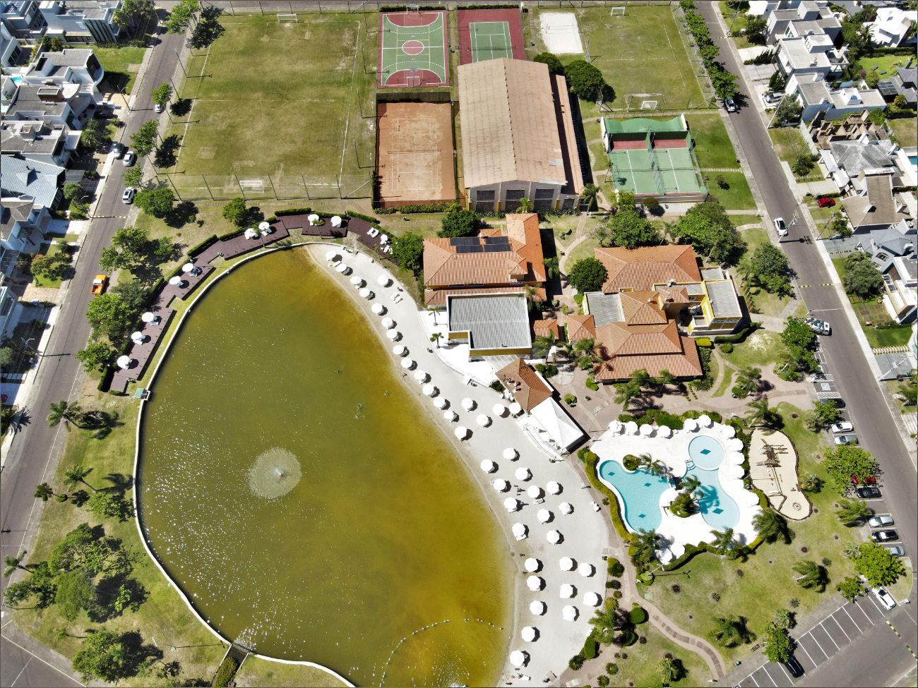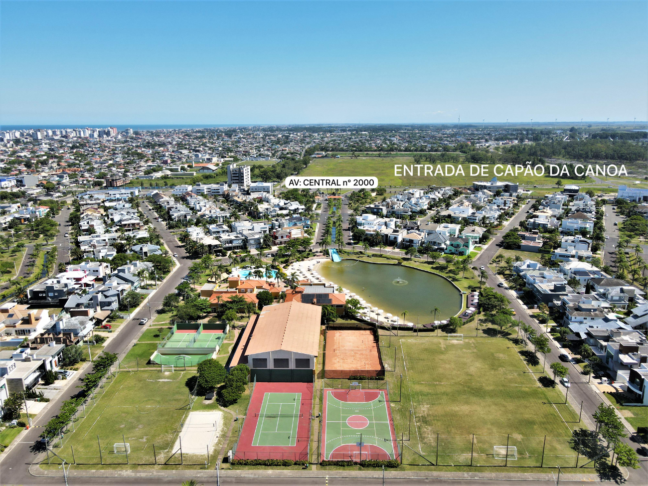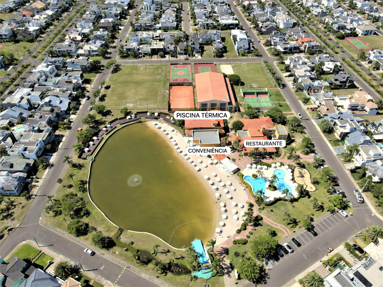O Condomínio Fechado Condado de Capão oferece ampla infra-estrutura: -Sistema de segurança com vigias 24hs -Quadras de tênis sintéticas -2 quadras de saibro cobertas -Espaço gourmet com churrasqueira -Vestiários -Quadras de paddle abertas -Quadras poliesportivas -Campos de futebol gramados -Clube com salão de festas -Sala de jogos -Piscina térmica coberta e sauna -Praia artificial com toboágua, cascata artificial -Bar (conveniência e lanches) -Playgrounds -Praças e áreas verdes