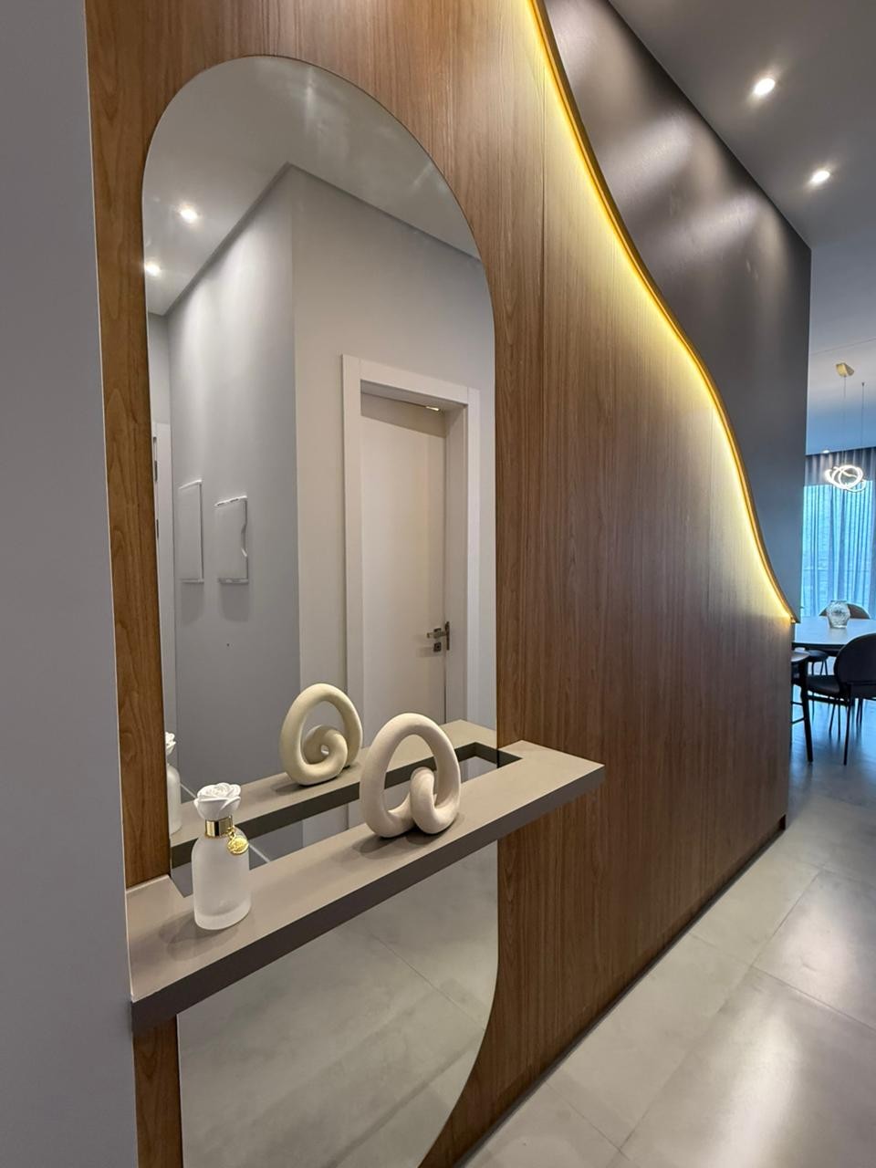 > Piso porcelanato na área social, piso vinílico na área íntima;