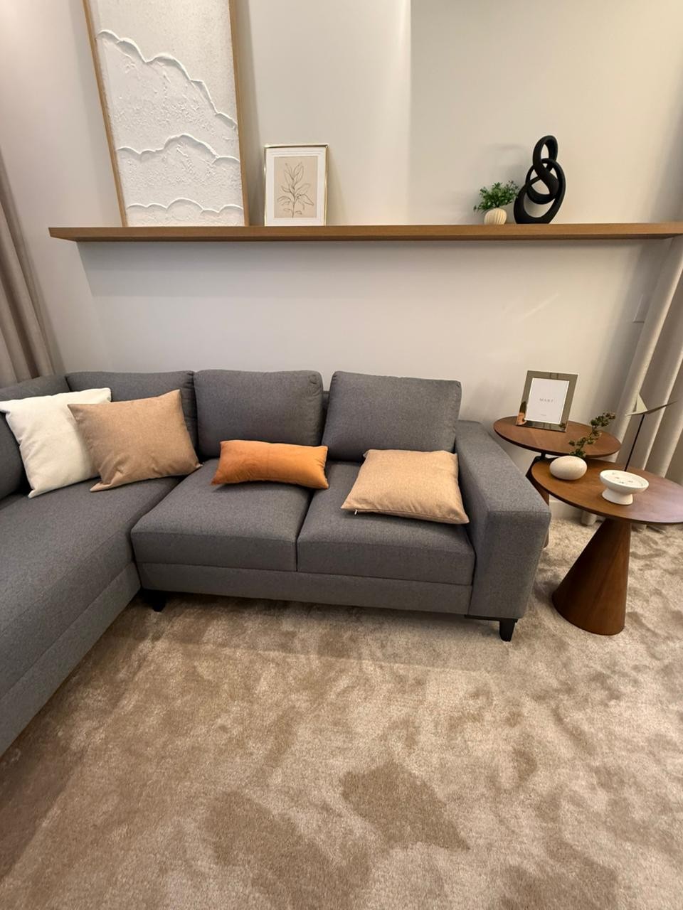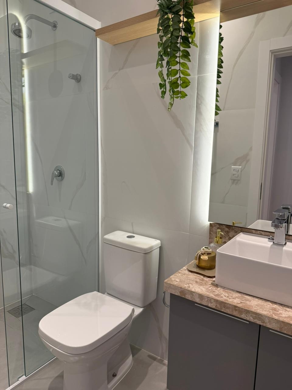 > Piso porcelanato na área social, piso vinílico na área íntima;
