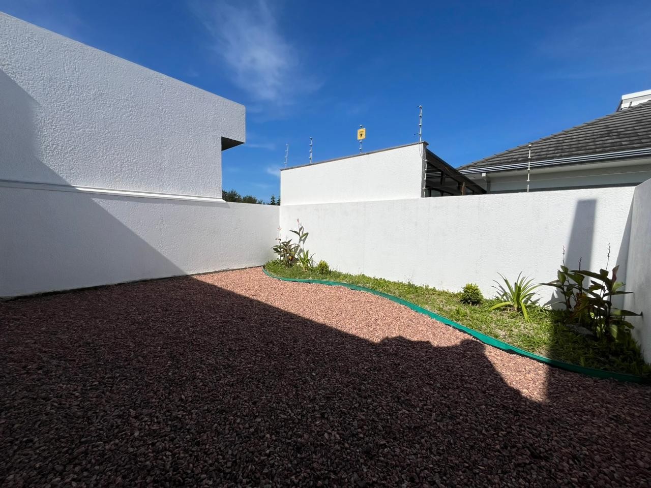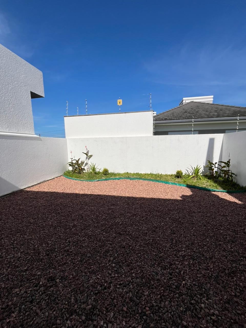 Casa térrea com laje de cobertura projetada para receber pergolado coberto com área gourmet, deck, lavabo, churrasqueira.