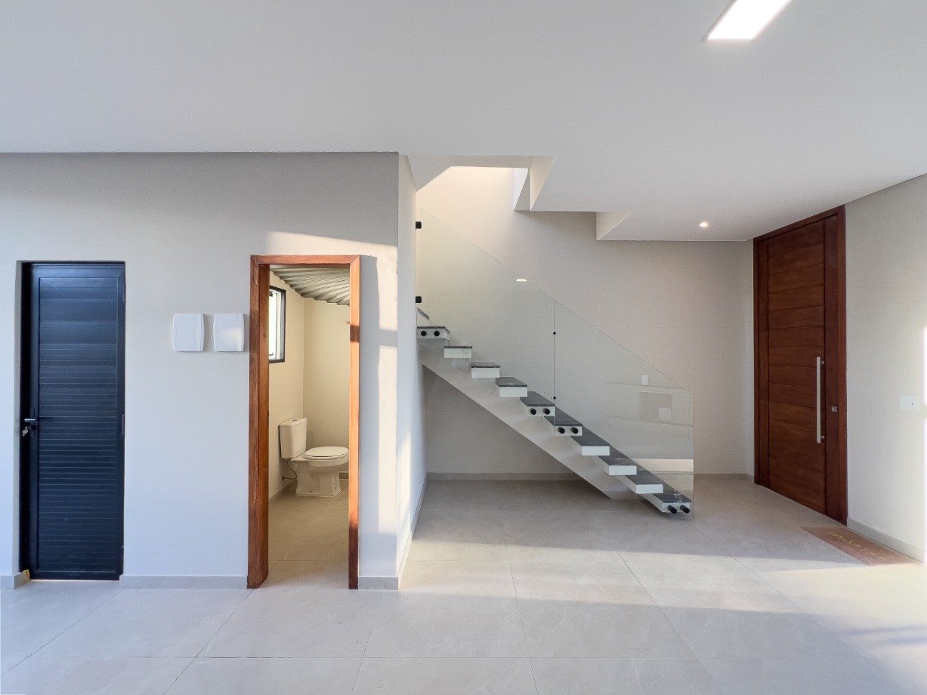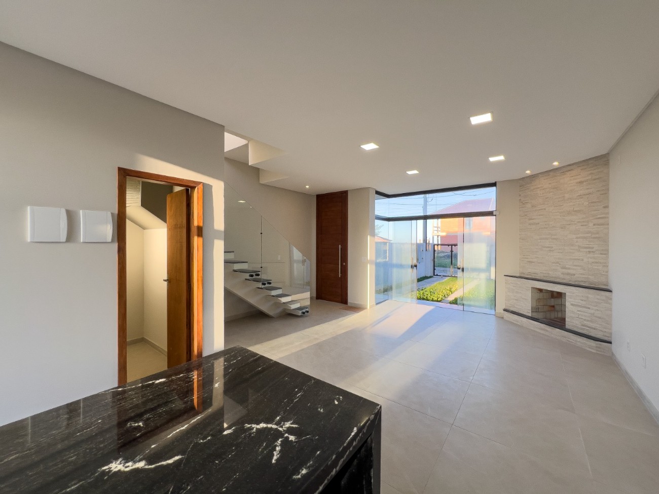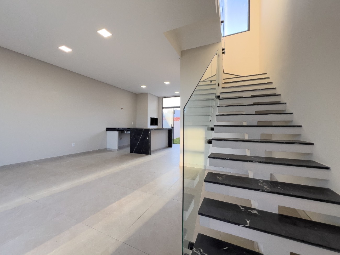 > Acabamentos com aberturas de vidro temperado com alumínio preto;