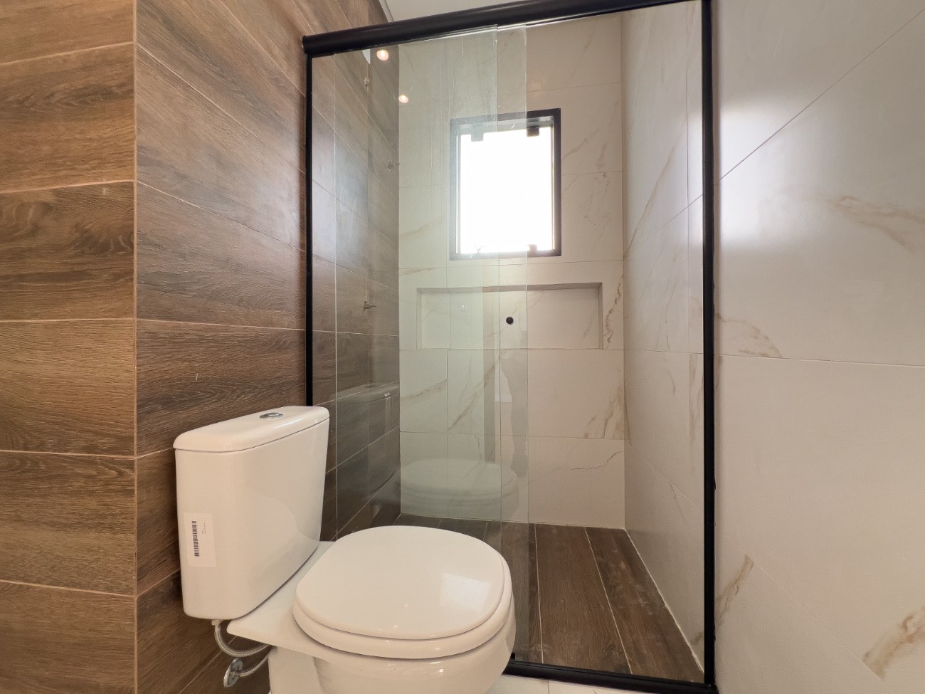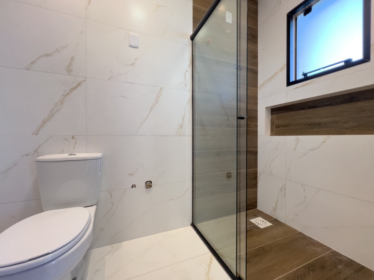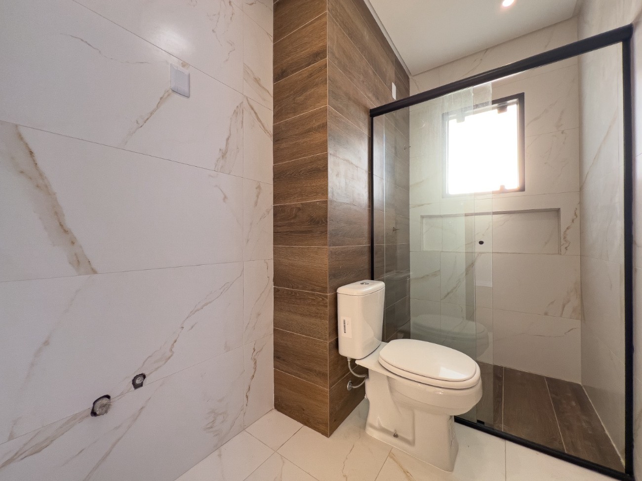 > Banheiros revestidos com porcelanato e forro rebaixado em gesso;