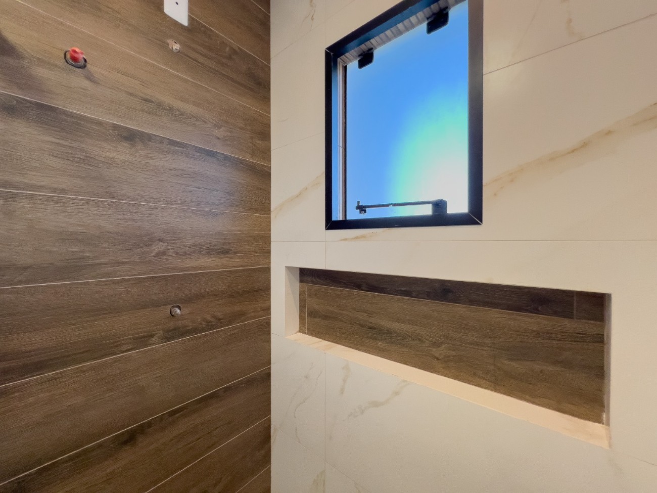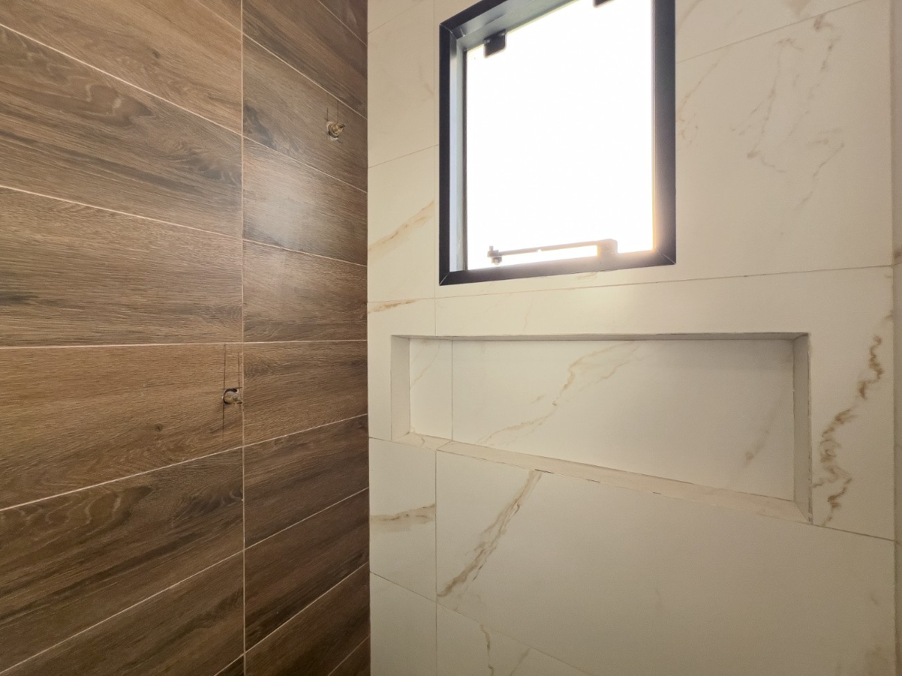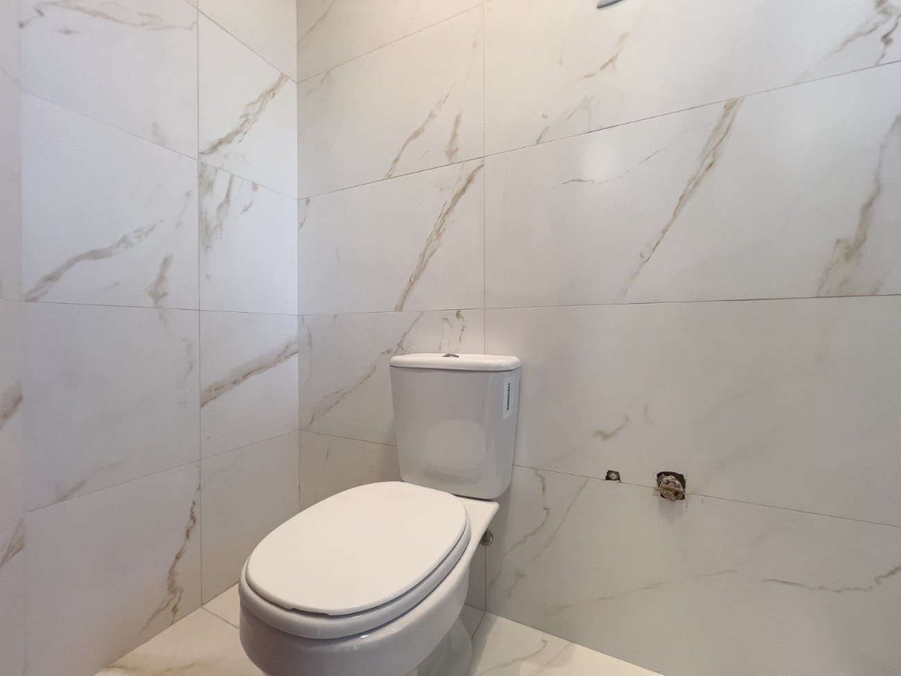 > Banheiros revestidos com porcelanato e forro rebaixado em gesso;