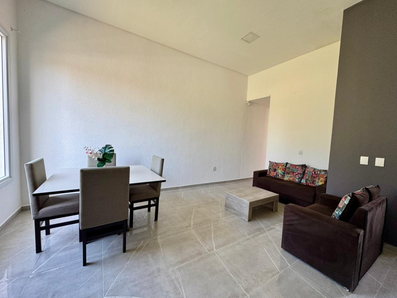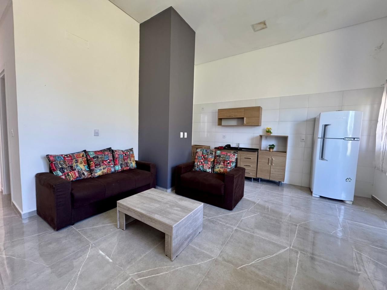 > Sala e cozinha integradas;