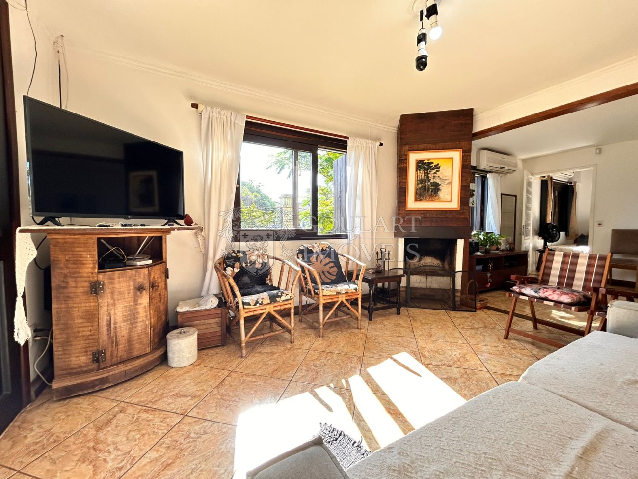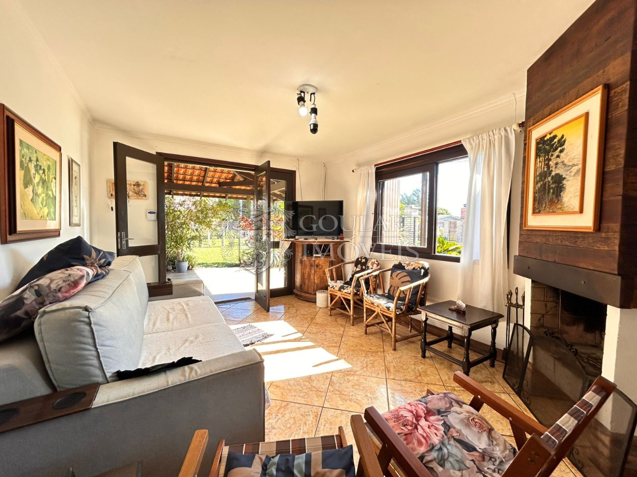 > Sala de estar com lareira;