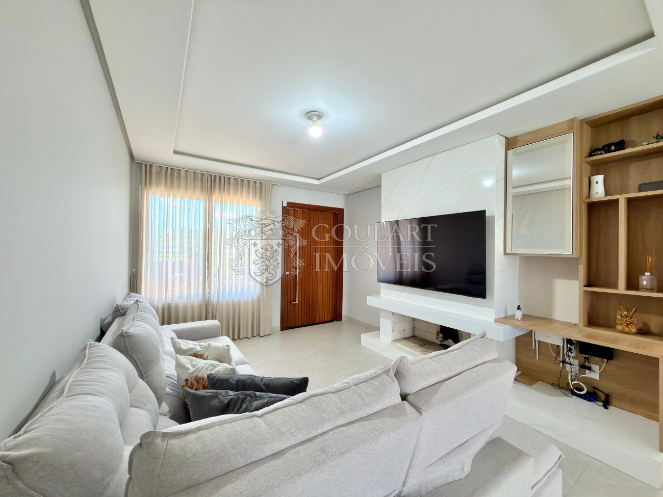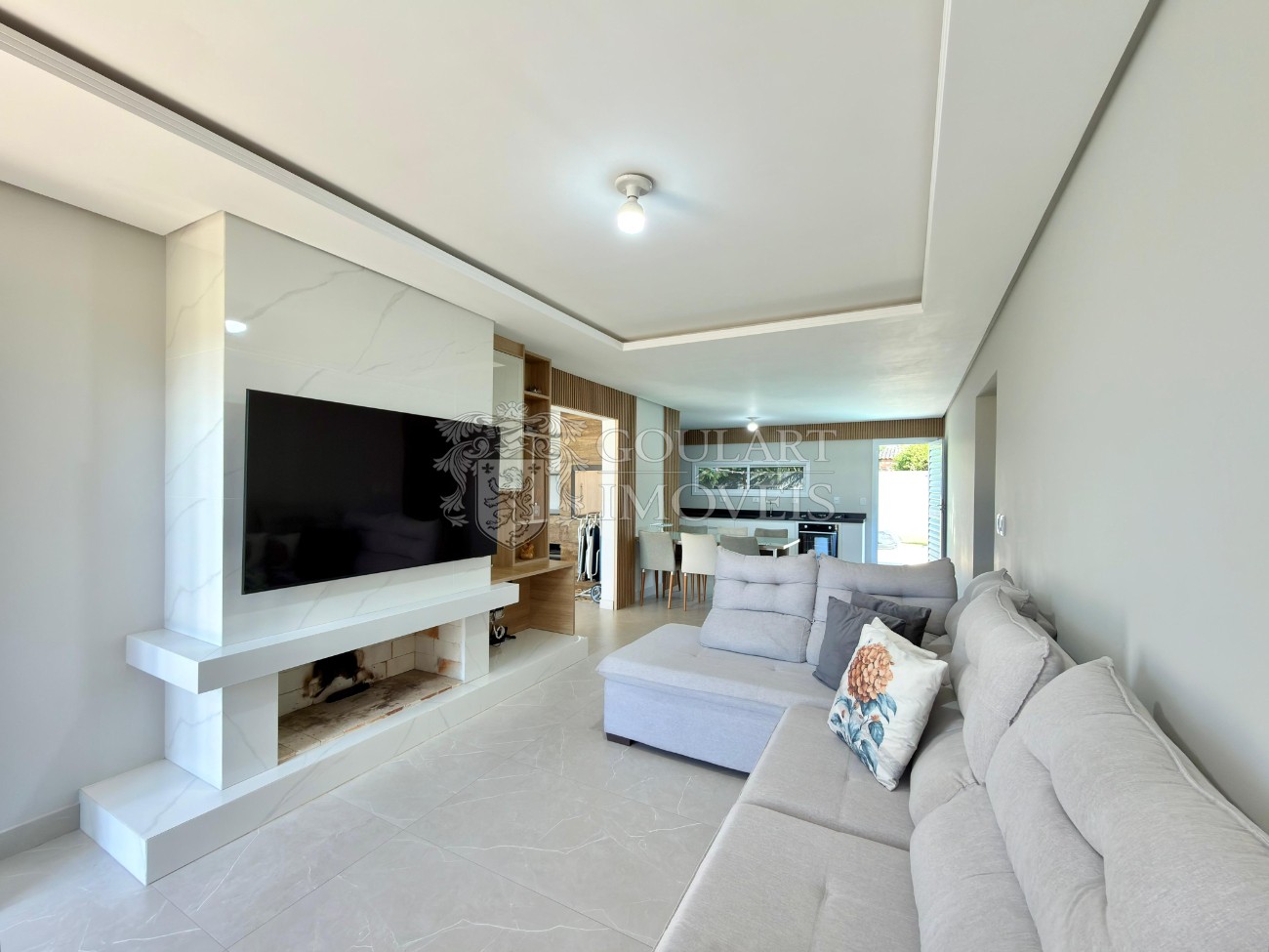 > Living amplo com lareira;