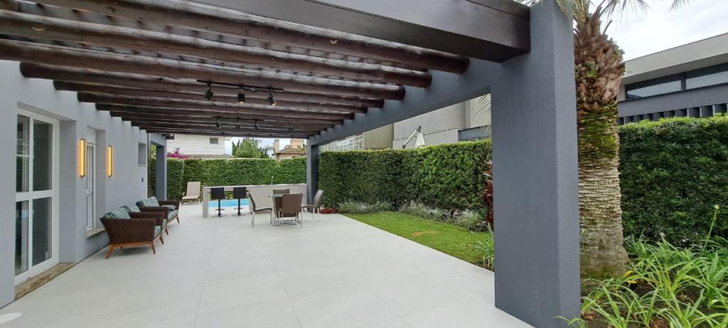 > Varanda com pergolado e ambientes climatizados;