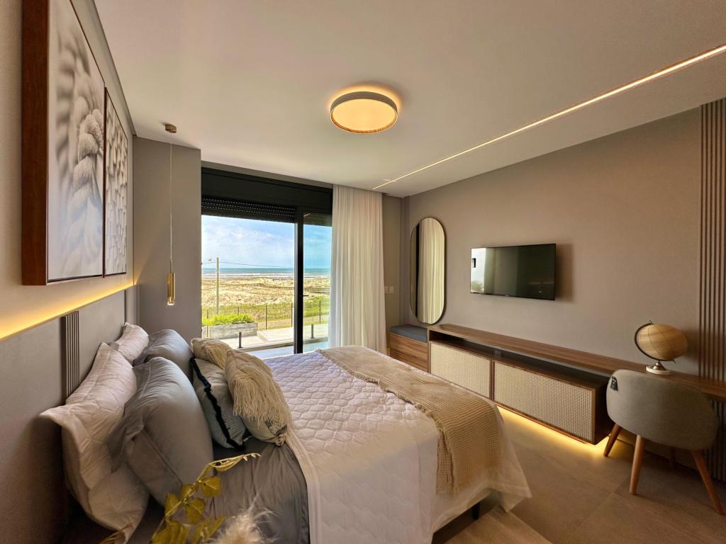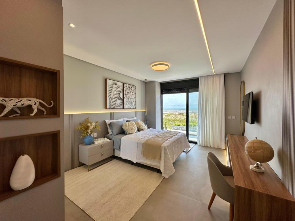 > 3 suítes com sacada frente para o mar;