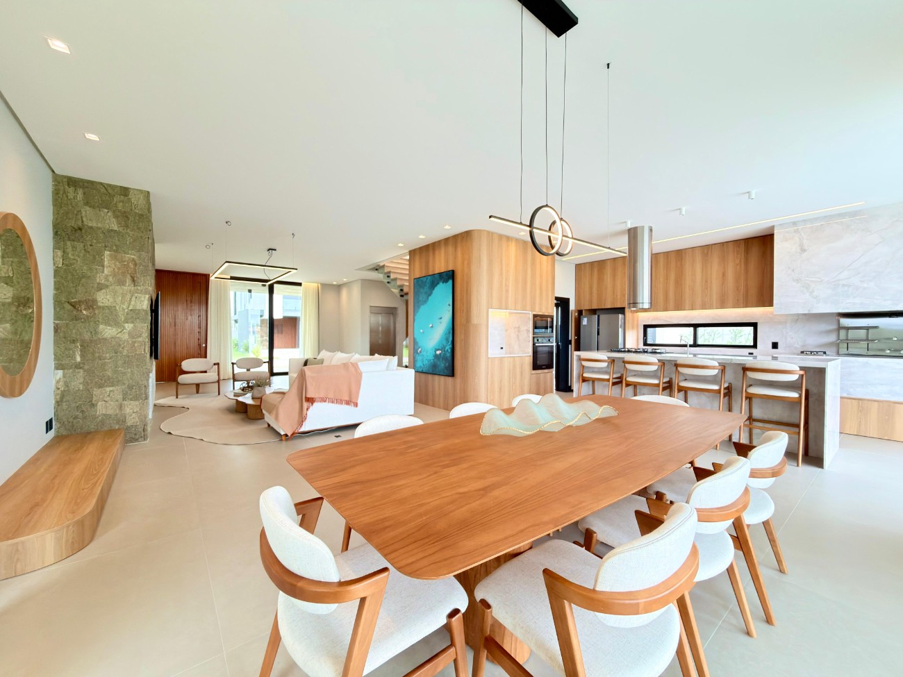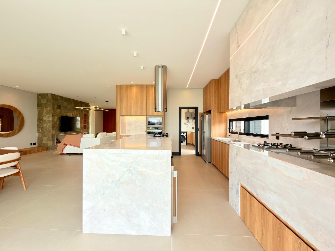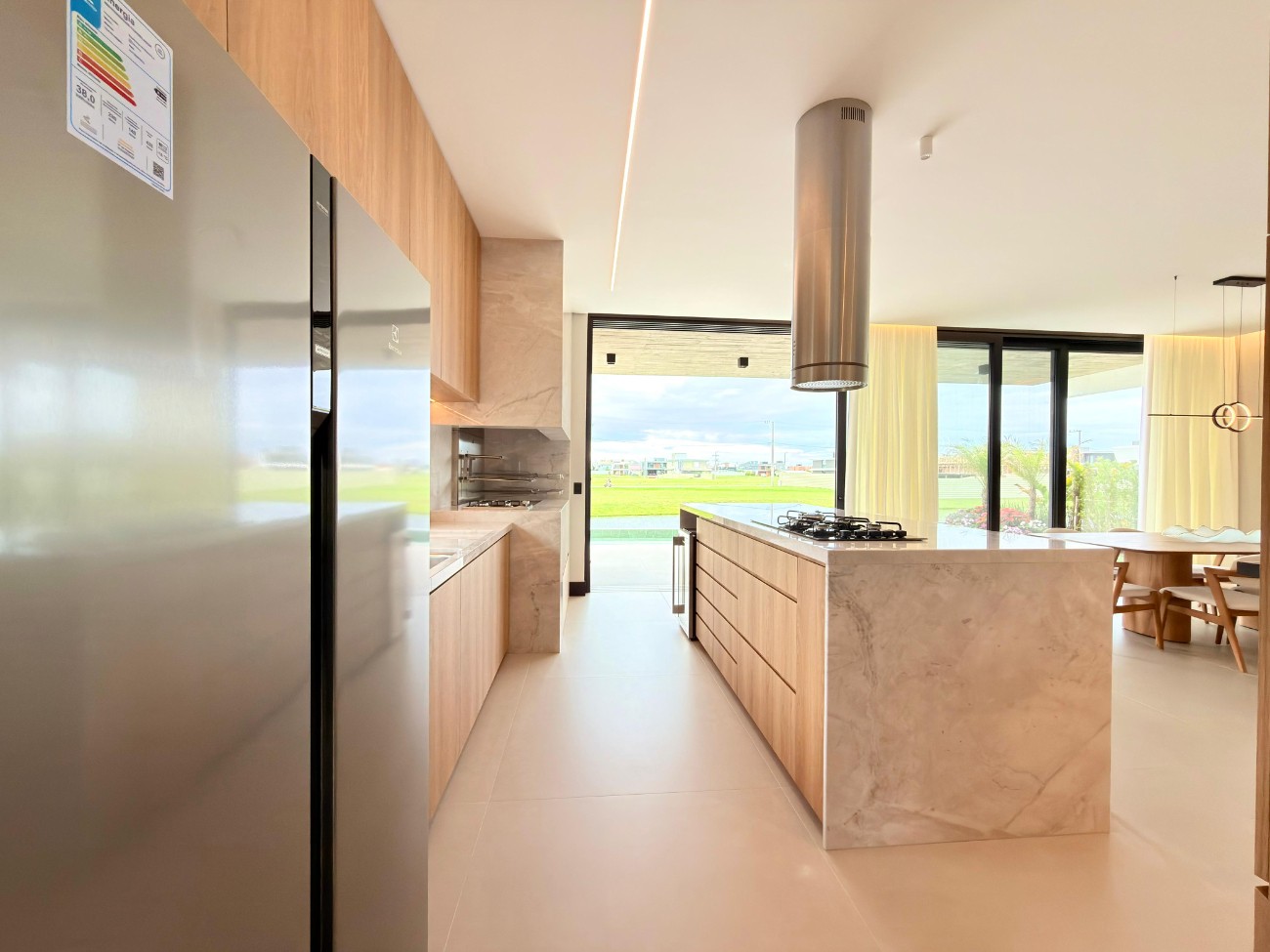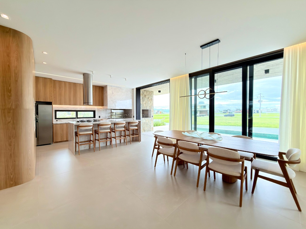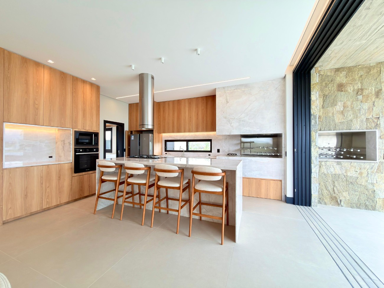 > Cozinha americana com churrasqueira;