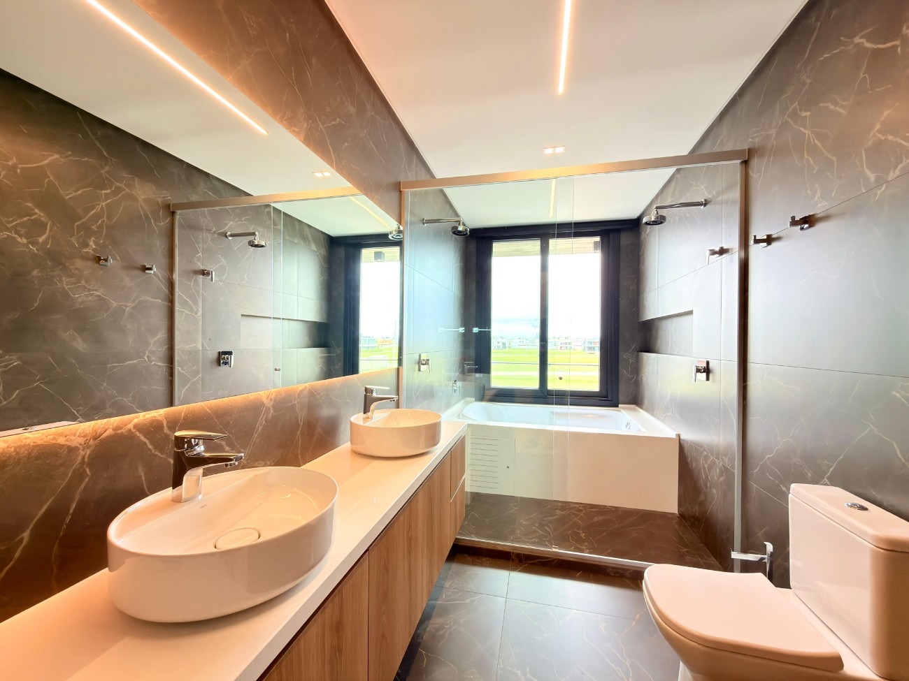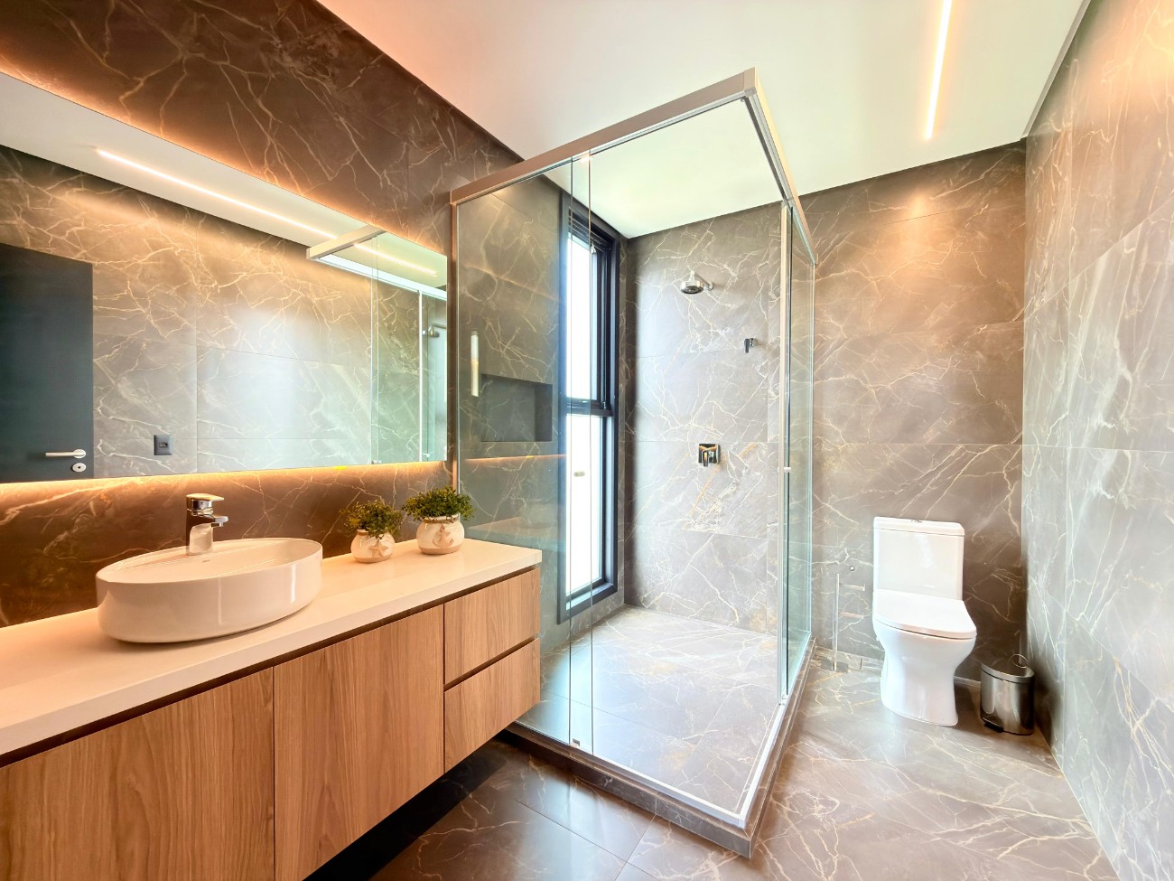 > Paisagismo personalizado com iluminação e irrigação automática;