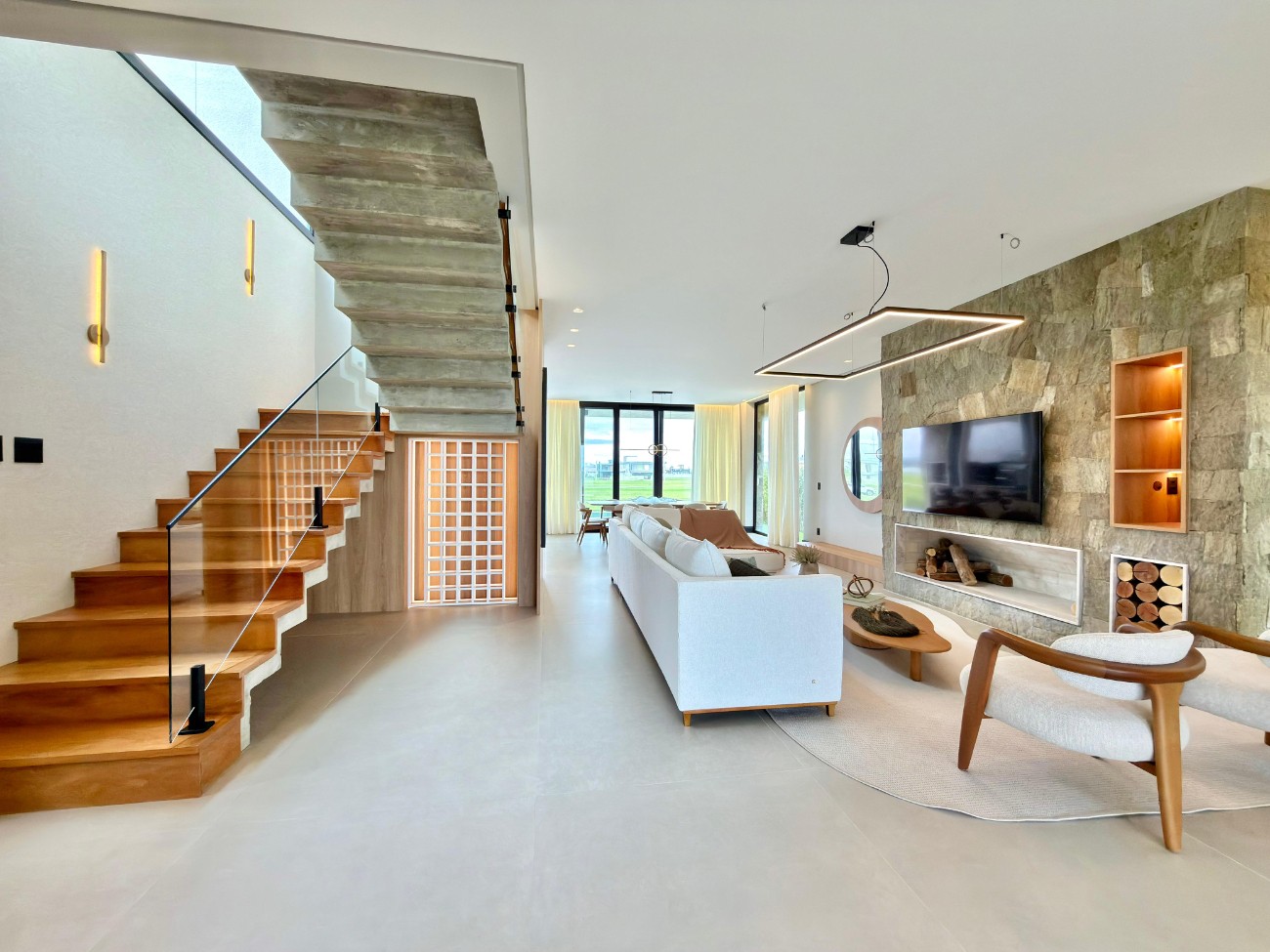 > Sala de estar com lareira;