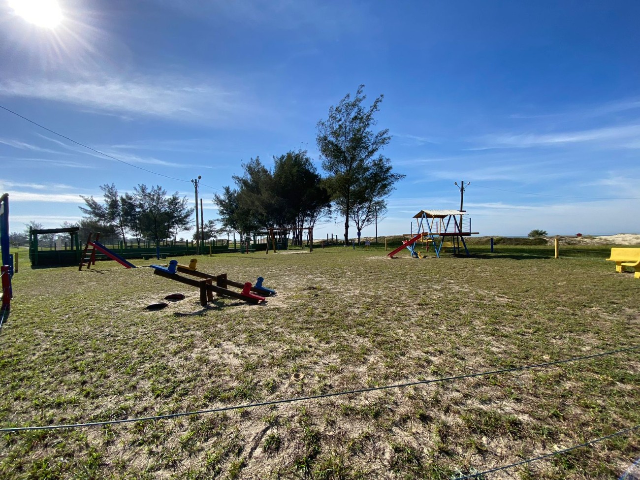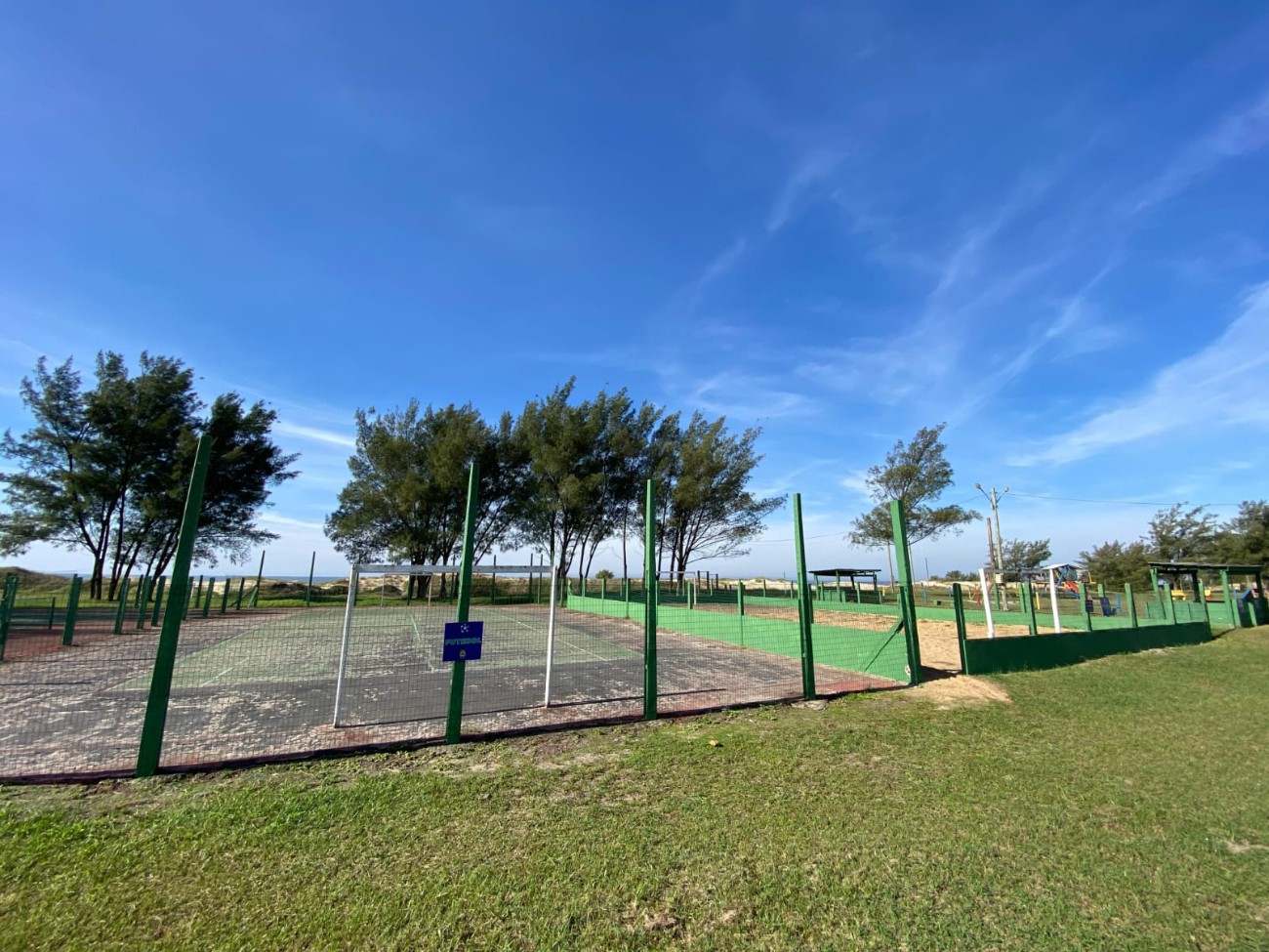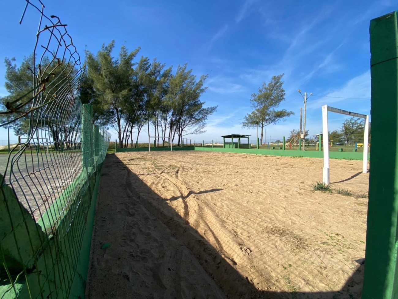 > Quadra de vôlei, futebol de areia, tênis, cancha de bocha..