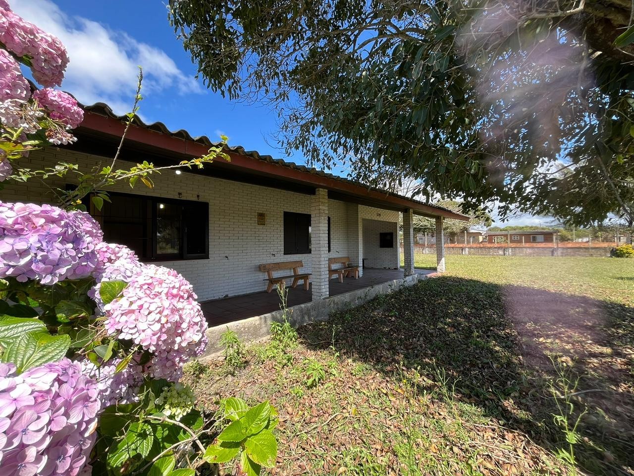 > Casa de esquina com amplo pátio;