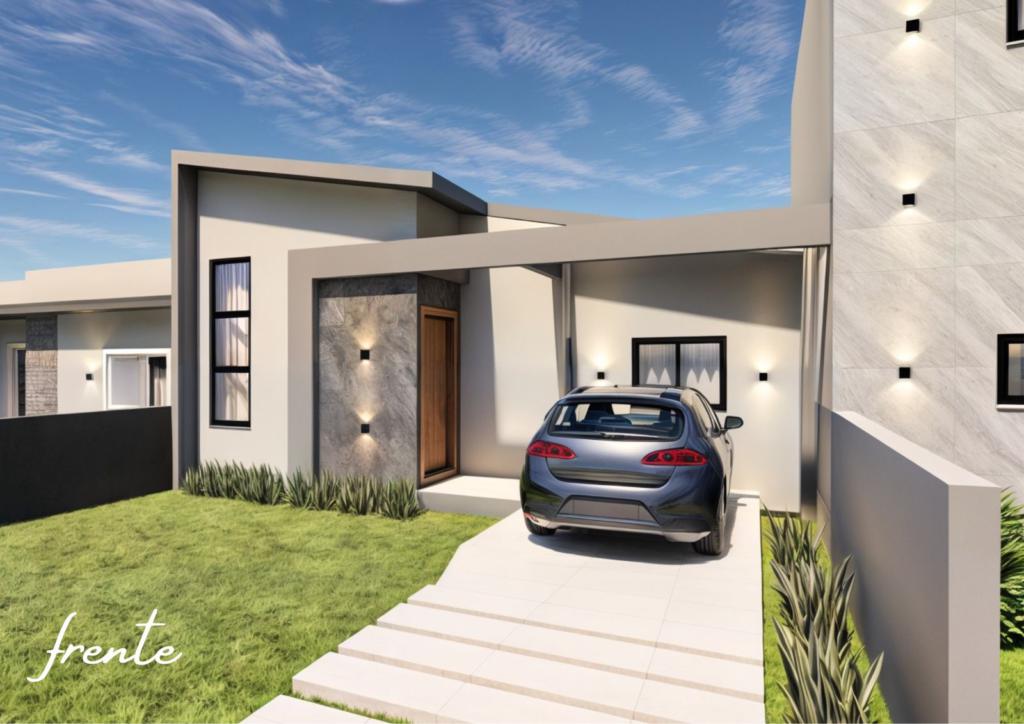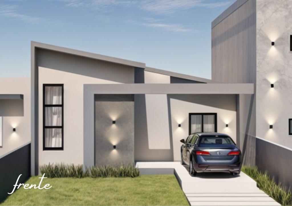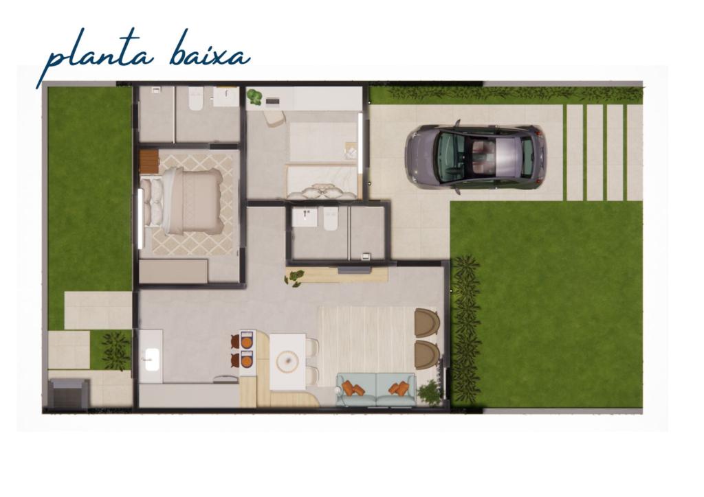 > Pátio frontal, e pátio nos fundos com churrasqueira;