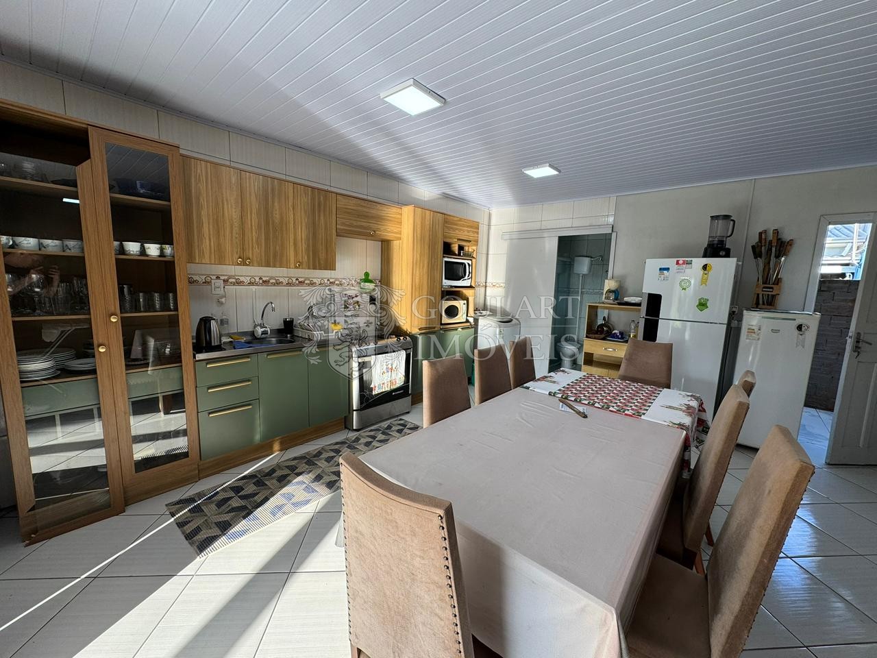 > Sala e cozinha integradas;