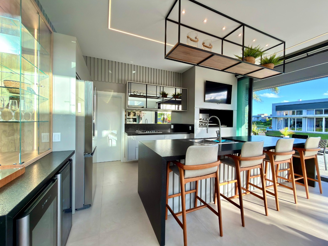 > Cozinha gourmet com churrasqueira;