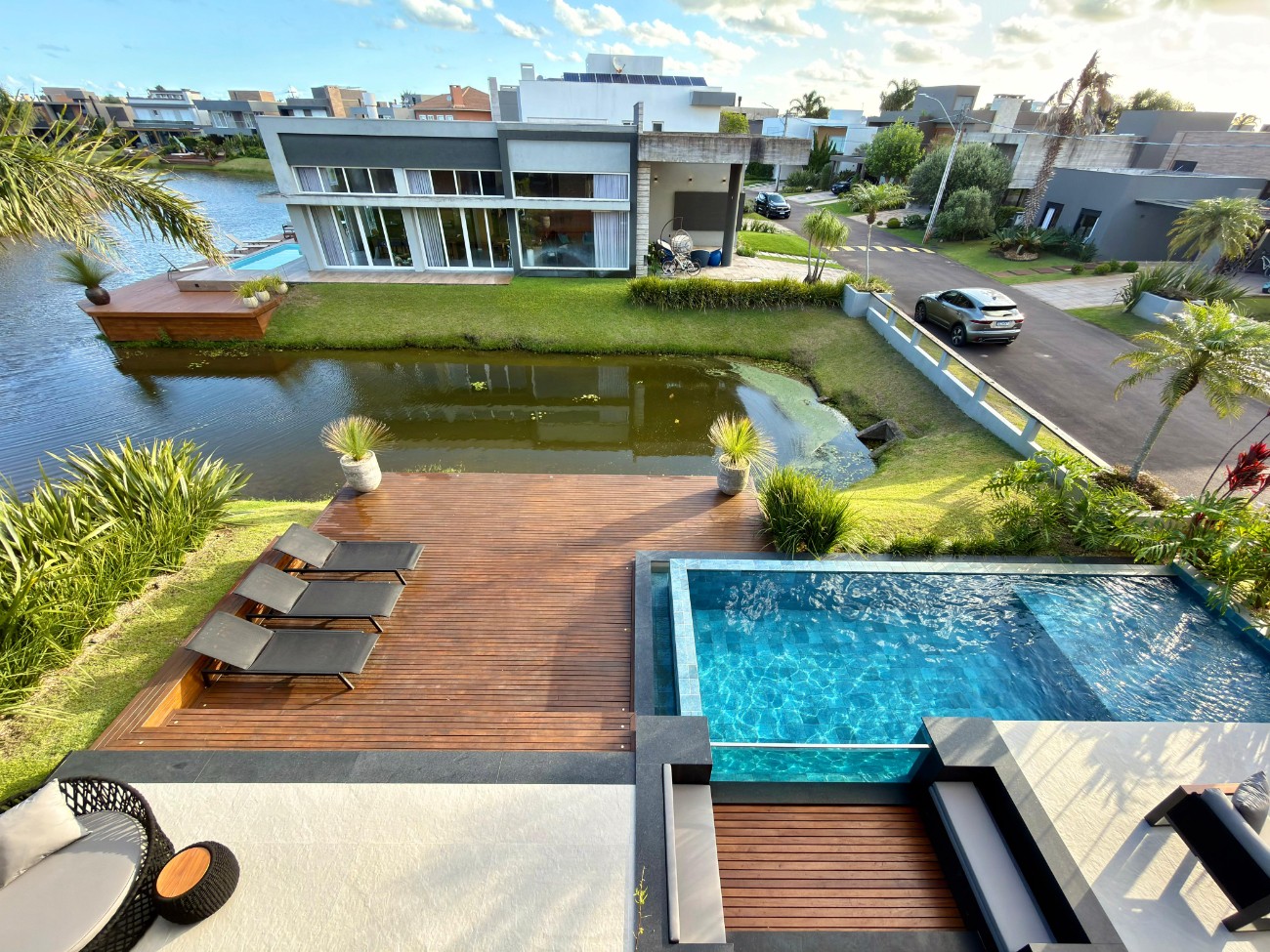 > Lounge externo para o lago com 105,85 m²;
