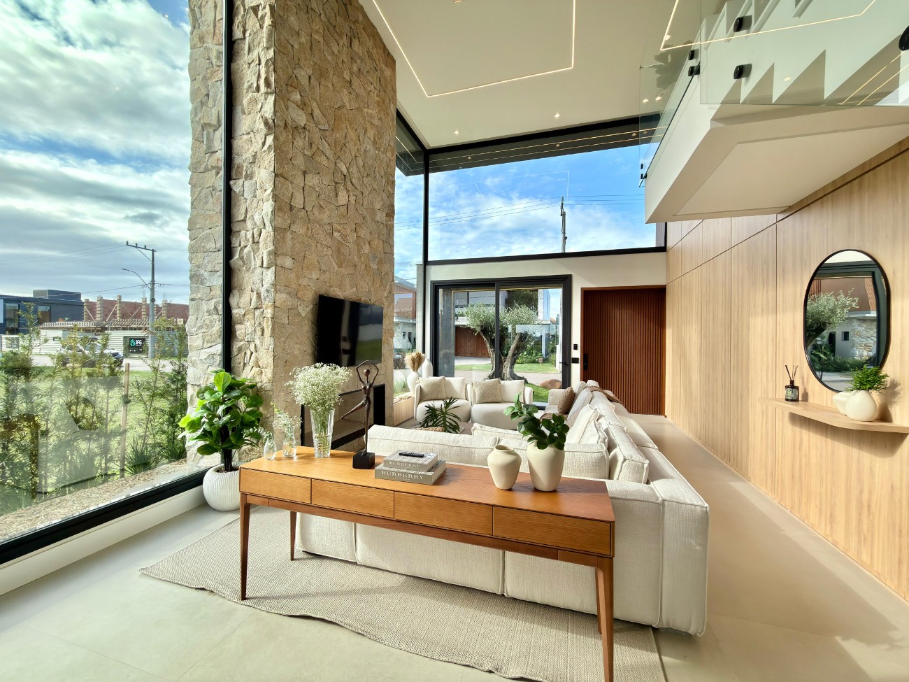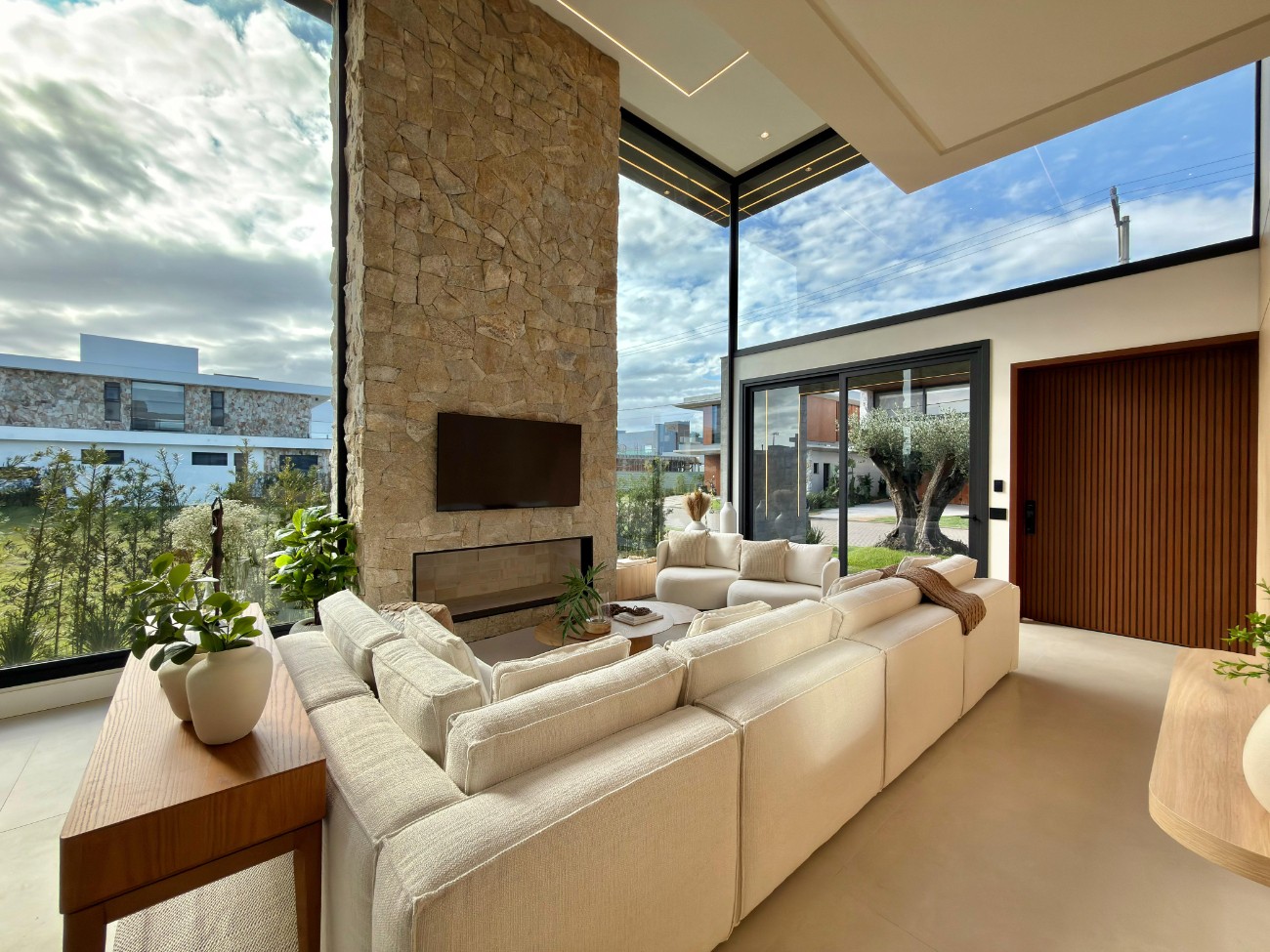 > Sala de estar com lareira;