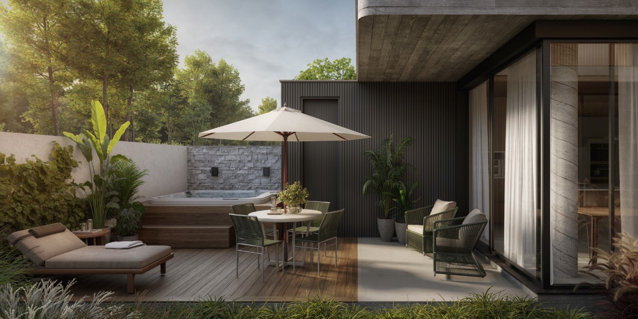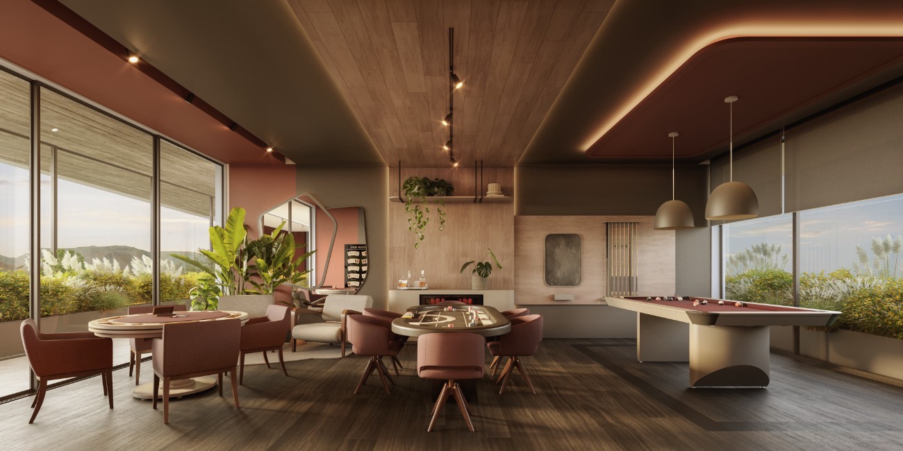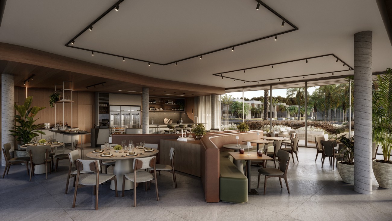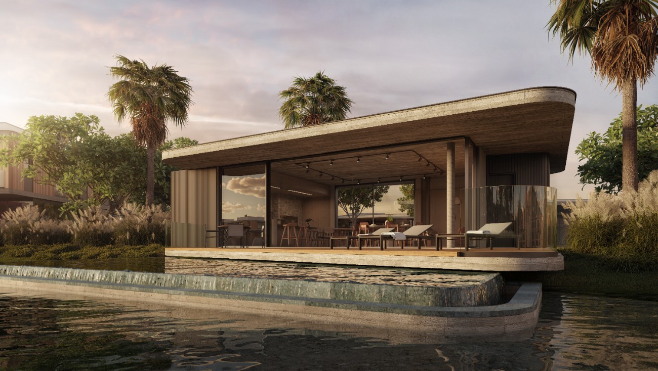 Infraestrutura de lazer completa com praia artificial privada, marina para jet ski e clube social de 3.000m².